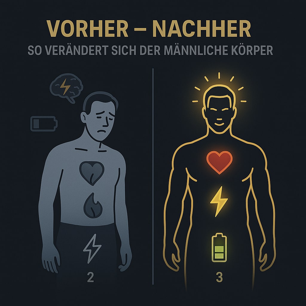 Viele Männer berichten über mehr Energie, gesteigertes Selbstvertrauen, verbesserten Fokus und eine spürbare Erneuerung ihrer Männlichkeit – bereits nach wenigen Tagen.
